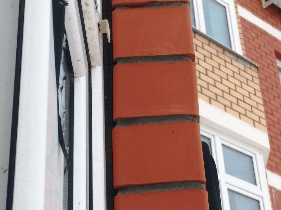 Фотография 1. Строительный раствор не уложен заподлицо по вертикальной плоскости кирпича