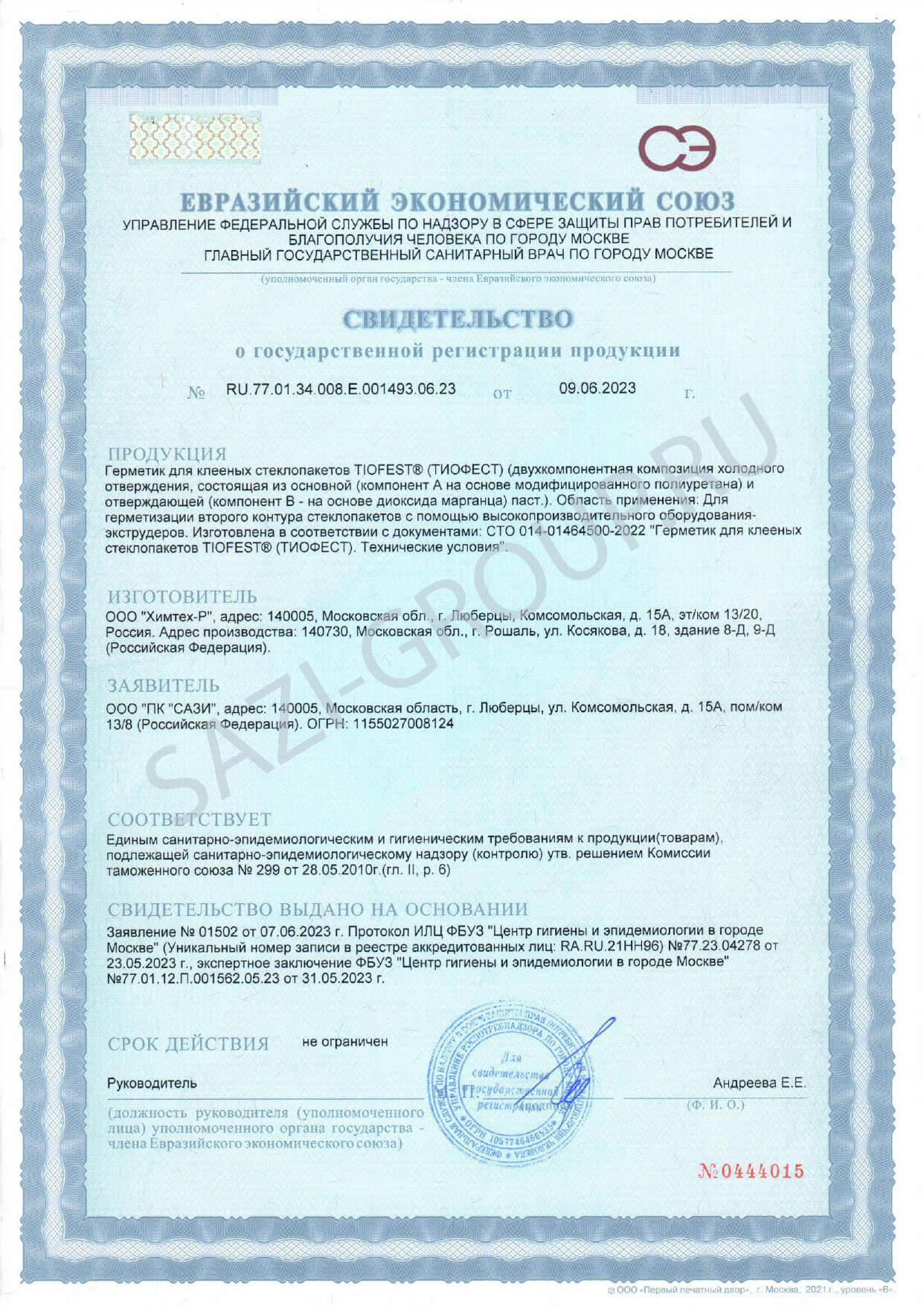 • Свидетельство о госрегистрации Свидетельство о госрегистрации Сазиласт 24 Комфорт Свидетельство о госрегистрации Сазиласт 24 Комфорт